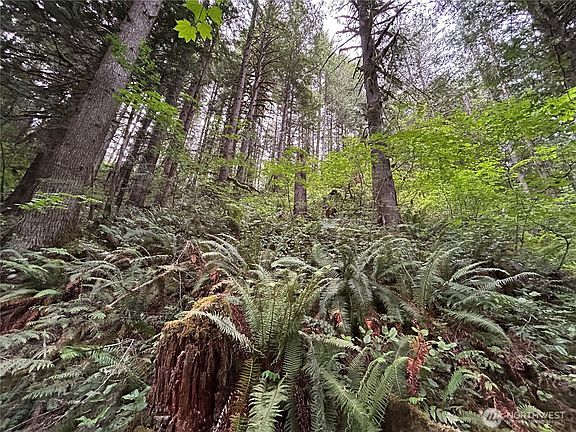 Scenic and sloped lotSits among evergreensWater on siteLevel spot