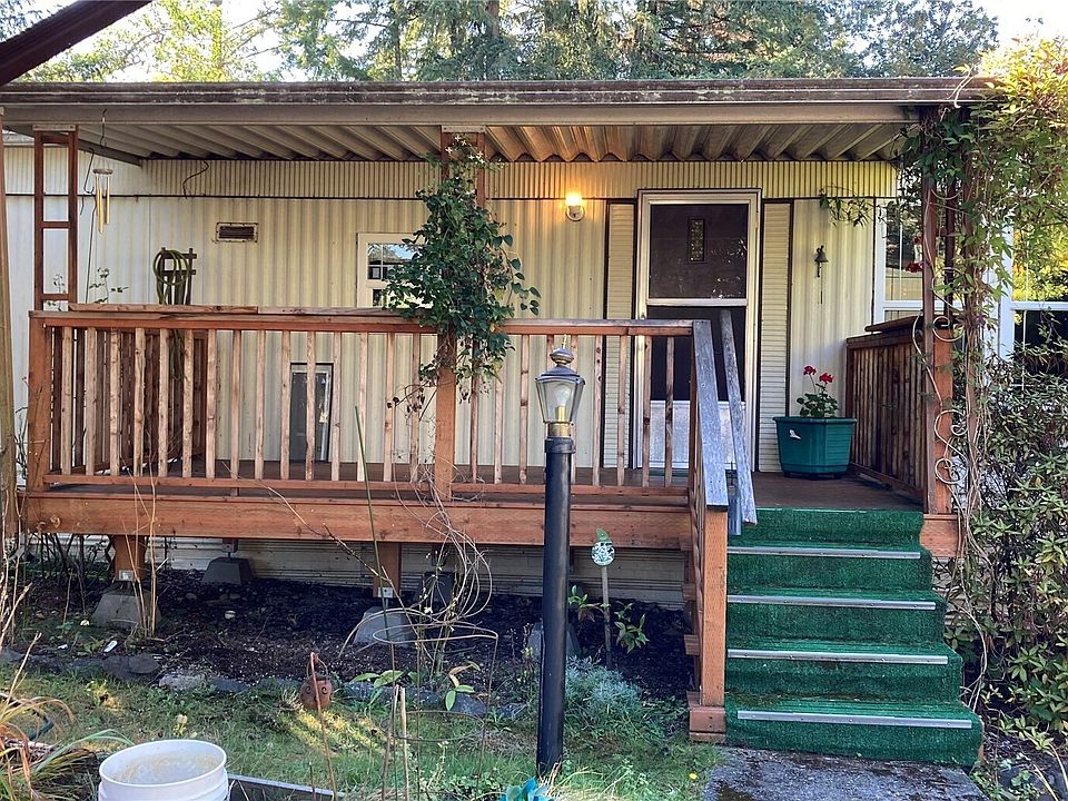 Move into this 2 bedroom home in the quiet all ages community of Cedars MHP. If you love gardening and privacy, this home is for you with its large fenced yard in the back of the park with all the privacy you would ever want. Owner left gardening tools to get you started in the very large shed. This 924 SF home has an open floor plan with kitchen with eating area, living room, 2 bedrooms, 1 bath with a jetted tub. Owner left the tile and cutting saw to finish the bathroom, light fixtures for the kitchen and bathroom, a new fan for the bedroom and a WIFI capable alarm system. Very mature landscaping, two sheds, large back deck, carport with attached shed too. Park rent $795 including water/septic. Roof less than 5 years old. Welcome home!