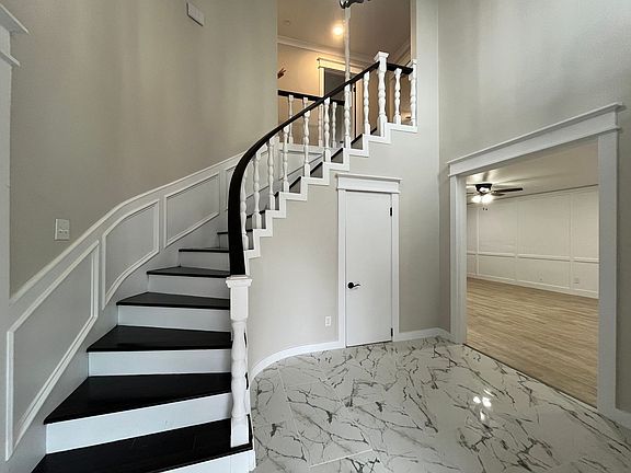 Spacious 5 bedroom 3.5 bath house with 2 primary suites on a corner lot in a cul-de-sac street in Country Club Estates. One primary suite downstairs. The front door opens up to a foyer filled with natural light and a discreet half bath under the stairs. To the left of the foyer you will find a large living room with a decorative fireplace and built in shelving which provides access to the fully fenced in backyard and covered patio. Dining room just off the living room opens up to a kitchen that features granite countertops, all stainless steel appliances, double ovens, glass cook top, and floating vent hood. Great for entertaining guests! To the left of the foyer, you will find the first primary suite with walk in closet and built in shelving, oversized standup shower tiled from floor to ceiling with bench and glass doors, separate room for toilet, and double sinks. Upstairs you will find the second primary suite with walk in closet and stand up shower. This bedroom provides private access to the deck overlooking the backyard. Further down the hall, you'll find a bathroom that boasts a whole wall of storage, double sinks, and a tub shower combination. Three other bedrooms down the hall offer new carpet, ceiling fans, and one overlooks the front yard while two others overlook the backyard. All bedrooms can accommodate large furniture. Located with a quick commute to schools, parks, restaurants, grocery, entertainment and so much more! Call a realtor today to schedule a tour.