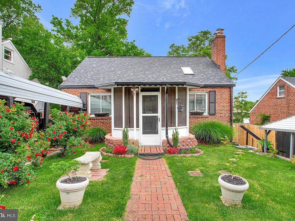 Three Bedroom, two full bath all brick cape cod in Cheverly. Remodeled kitchen with granite counter tops and stainless steel appliances. Remodeled bath on main level. Roof and air conditioning unit replaced in 2022. Screened in front porch. Beautiful knotty pine bedroom on upper level. Hardwood floors on main and upper level. Sun tunnel in kitchen. Skylight and wood burning fireplace in living room. Ceiling fans throughout. Fenced yard. Landscaped back yard. Two covered carports and off street parking.