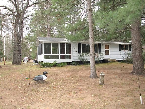 Nice 3BR/1BA 4-season home on a great, level wooded lot with 100' of frontage on the Clam River. Home features open floor plan with vaulted ceilings, kitchen/dining room, main floor full bathroom, full basement and large 3-season porch overlooking the waterfront. Newer furnace and hot water heater. 2 detached garages - one is 14 X 22 and the other is 26 X 27 with a 10 X 27 lean-to for added parking and storage. Also includes 3 small storage sheds. Towering pine trees on this .82 acre lot. Brand new dock for 2024. Enjoy the peace and quiet of the winding Clam River with quick access by boat into Lower Clam Lake. Perfect year-round home or get-away-spot!