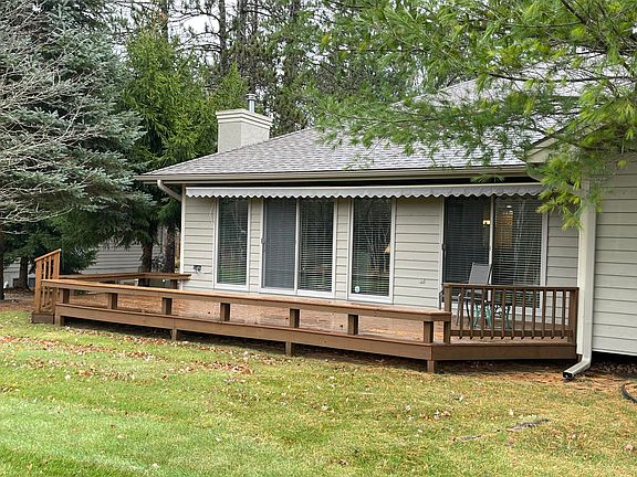 All the best of care-free condo living! Great room with gas fireplace, vaulted tongue & groove ceilings, & door wall to large deck. Enjoy the calming views of Whispering Lake inside & out! Split floor plan with private primary suite. 2 more main level bedrooms (one used as office with custom cabinets), guest bath & main level laundry. Attached, finished 2-car garage. Mostly finished lower level was used for woodworking with MORE built-in storage, 2 non-conforming bedrooms, a 3rd full bath, & 2 egress windows. Furnace, AC & water heater - all just 3 years old. Exterior is well maintained by association. Close to Gaylord, many golf courses, Michaywe amenities & all the best Michigan recreation! Well-constructed by Sepp - a legendary Michaywe builder.