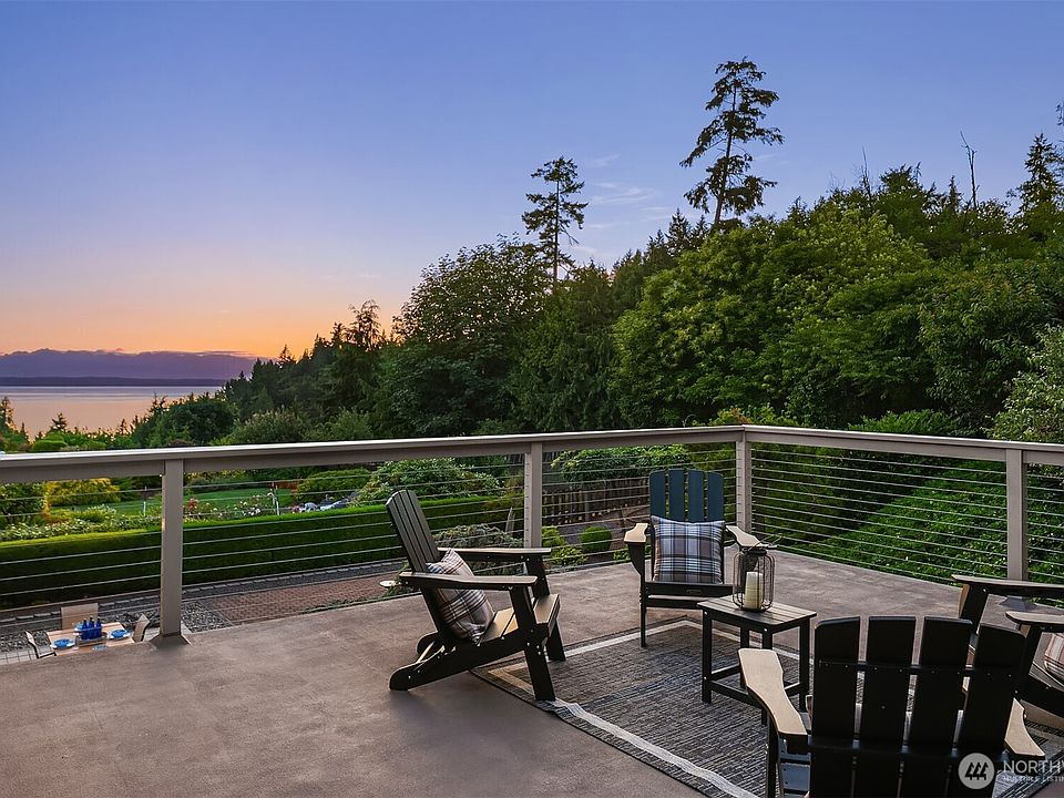 Nestled in Edmonds’ Picnic Point 4-bed home offers park-like grounds w/ mature landscaping & greenbelt backdrop for lasting privacy. Enjoy sunsets & Sound/Olympic views from the multiple outdoor gathering spaces & top flr Primary Wing’s private balcony. Luxe en-suite bath w/ dual showerheads & WIC w/ built-ins. Ideal for entertaining w/ LG terrace, walkways & outdoor fountain. Inside features vaulted ceilings, hardwoods, grand formal/informal spaces & chef’s kitchen w/ cherry shaker cabinetry, granite counters, SS appliances & walk-in pantry. Spacious bonus rm w/ slider to backyard, well-appointed laundry/mudroom w/ cabinetry & 2-car garage. Mukilteo SD. Generous extra storage space. This retreat blends classic NW style w/ modern comfort