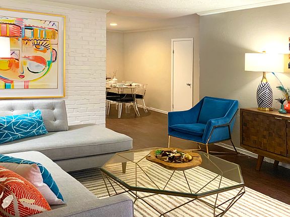 As you enter the spacious living & dining area you will know you have found a special apartment home. Wonderful brick accent walls, bookcases, and crown moldings adorn the homes. Features like the ceiling fan add to your comfort.