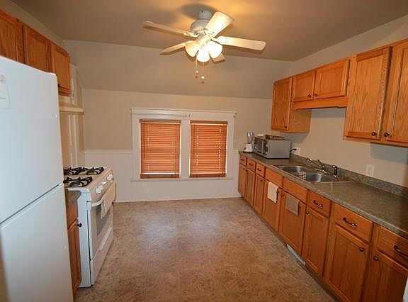 Cash flow! Enclosed front porch, some newer windows in lower unit. Newer roof. Appliances included. Upper unit remodeled. Lower is on year lease at $750 month. Upper pays $650. Gas is split 70/30 between units. Tenants pay own electric. Owner pays water. 2 car garage currently used by owner.