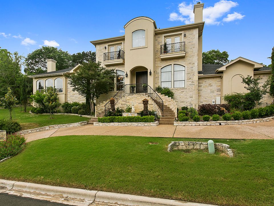 Elegant executive's home featuring extensive moulding, soaring ceilings, abundant windows, custom iron railing, two master suites w/balconies, guest suite, large walk-in closets, marble and wood floors, arches and art niches. Beautiful views throughout home. Custom cherry cabinets, granite counters, Wolf and Bosch appliances. Kitchen opens to family room. Side entrance 3-car garage with storage, massive driveway. Private, large .636 acre lot, wooded back and side yards with tons of possibilities.