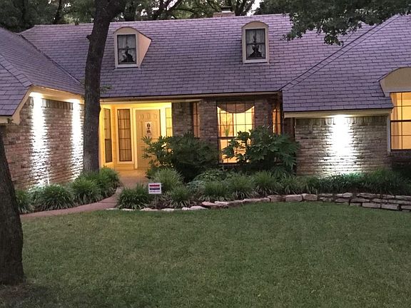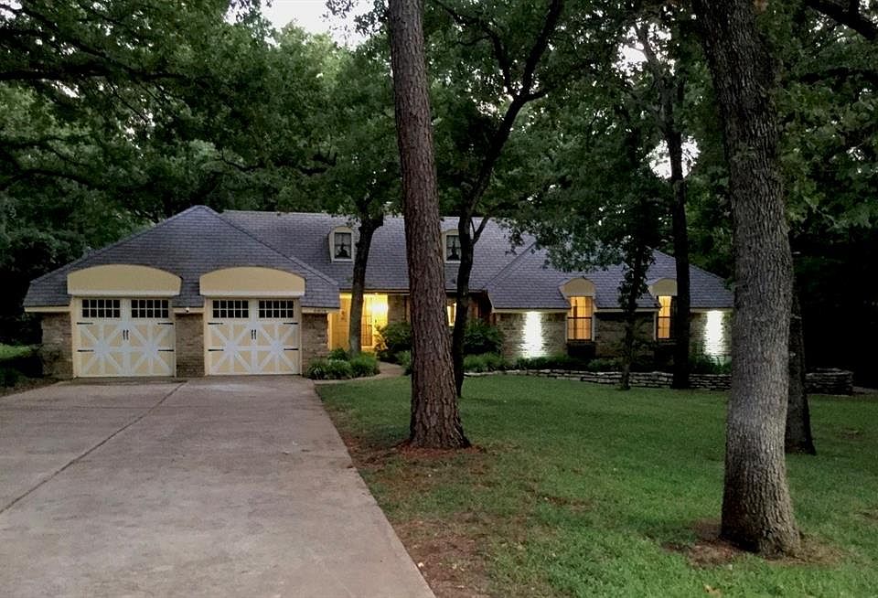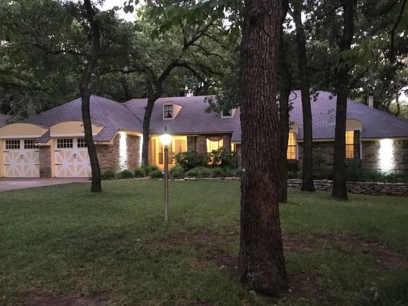 Lots of TLC in this beautifully maintained custom home in Shadywood South Estates! Over half an acre of trees and lush landscaping. Enjoy your coffee & listen to the birds from the lovely deck in the gorgeous backyard. 2 large living areas each with woodburning fireplace. Wet bar in front living. Formal dining features wine rack & built-in buffet. Updated kitchen boasts new hard surface counter tops, stainless steel sinks, brick floors & one year old oven. Split bedrooms. Master features sitting area & cozy bath with dual sinks, separate tub & shower and huge walk-in closet. Tons of storage throughout. Each secondary bedroom has walk-in closet. Attic fan. Close to Lake Arlington. Yard care included in rent.