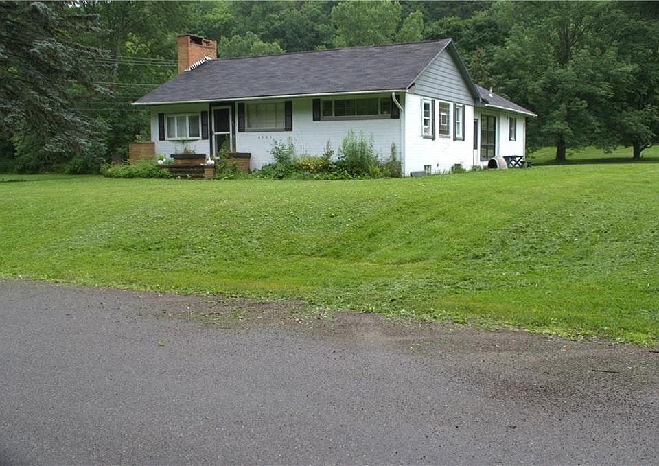 Lovely ranch home with stunning Maple hardwood floors throughout! This 2BR, 2 bath home has loads of living space.Priced to sell, under assessment! Tear off roof! Southern Tier Concrete block home.Bright family room has WB stove. Living room with WB fireplace. Galley style, eat in kitchen with pantry. The casually finished basement can be a rec room and the workbench with vice and loads of shelving is ready for your next project! There is plenty of room in the garage (with separate panel and 220) as well. You'll be close to town but will have a private acre+ lot with beautiful, mature plantings and majestic trees, where you can enjoy bon fires on a cement fire pit. This has been easy rental income or can also be your next home!! Call or text listing agent for showing instructions.