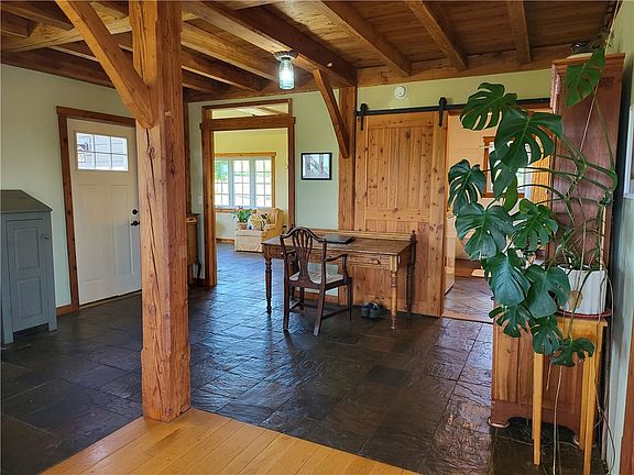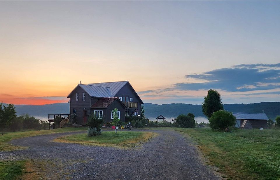 Discover handcrafted beauty and peaceful living in this one-owner Timber Frame home set on 20.32 hilltop acres with stunning 360° valley views. Built in 2010 using locally sourced Tamarack timbers, this custom-designed home features cathedral ceilings, radiant in-floor heat, white oak cabinetry, clawfoot tubs and a sunroom with a terra cotta roof. Natural light fills the open-concept layout, and an expansive deck is perfect for morning coffee, stargazing or entertaining.