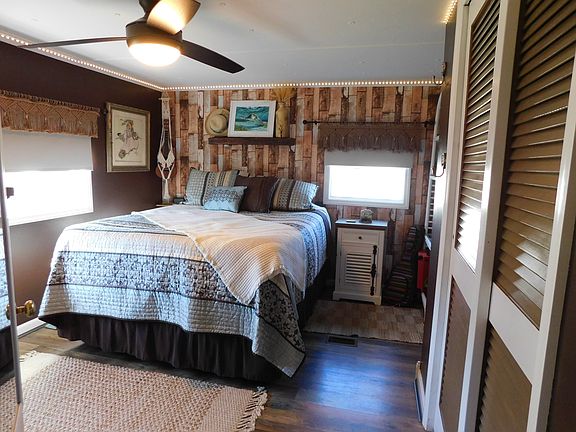 This beautifully remodeled unfurnished home blends modern touches with a breezy coastal feel. The stylish kitchen features a newly installed concrete countertop, complemented by a soothing light blue/gray tile backsplash. A new sink, faucet, and dishwasher complete the fresh, functional space. The bathroom continues the modern coastal theme with a striking glass vessel sink, updated faucet, and a new shower accented with tasteful seafaring details. In the bedroom, warm tones and a wood-look accent wall create a cozy retreat. Custom drapes and blinds, along with soft rope lighting, add a unique and relaxing ambiance-perfect for unwinding after a long day. Both the bedroom and living room feature new remote-controlled ceiling fans for comfort and convenience. Additional upgrades include a 2-year-old A/C unit with brand-new ductwork, plus a new washer and dryer. Step outside and enjoy the private backyard with a newly built deck-ideal for relaxing or entertaining. Hawaiian Village, a tropical paradise, is an Active 55 Adult community - the monthly Fee Package includes: Land-Lease, Lawn Service and use of Amenities for only $792 (No Additional Taxes or Fees). Hawaiian Village is pet friendly up to 25 pounds with a maximum of two pets. This home offers a great location and a fantastic selection of amenities including a large club house with free WIFI. Our club house is also a host home for Bingo every Thursday evening (during season), monthly community dinners as well as periodic dances and concerts. Enjoy our pool (heated for winter), and engage in a game of pool in our New Activity Building that also has a fitness room and card/poker tables. We also have a library, shuffleboard! Lawn service is also included. It is conveniently located close to the Sarasota-Bradenton International Airport (2.5 miles) and offers access to Florida's most beautiful beaches. Call today to schedule a tour to see how this nice home can be yours in this highly sought after community.