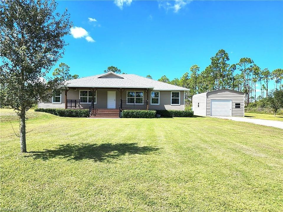 SIGNIFICANT PRICE DROP! Priced to sell! You won’t be disappointed! Welcome to peaceful country living at its best! Tucked away on 2.5 fully fenced acres, this meticulously cared-for 3-bedroom, 2-bath home combines peaceful rural living, comfort, functionality and smart design—zoned agricultural, NO HOA, and NOT in a flood zone! Whether you're dreaming of a mini farm, a private homestead, or simply extra space to roam, this property checks all the boxes and offers endless possibilities! Step through the inviting covered front porch into a warm and welcoming interior. The well-appointed kitchen is equipped with a center island, vaulted ceilings, recessed lighting, stainless steel appliances, breakfast bar, oversized walk-in pantry, and seamless access to the expansive back deck—perfect for outdoor entertaining, sunset dinners, or enjoying your morning coffee while surrounded by nature. The home features a spacious open-concept living and dining area—perfect for entertaining, family gatherings, or simply unwinding after a long day. A split floor plan ensures privacy, with the owner’s suite offering a walk-in closet with custom built-ins, ensuite with jetted tub, separate shower, and dual vanities. Two additional bedrooms and a full guest bath are located on the opposite side of the home, ideal for family, guests, or flexible living arrangements. Additional highlights include an oversized mudroom with built-in cabinetry, sink, shelving, and washer & dryer. Equipped with dual-zone A/C for optimal comfort and efficient climate control. A massive 1,459 sq ft detached garage—perfect for tools, hobbies, vehicles, or workshop use. Ample space to bring your horses, goats, chickens, ATV's, or start the garden of your dreams. All this while being just minutes from shopping, dining, Punta Gorda Airport, and the beautiful open waters of Charlotte Harbor—perfect for boating, kayaking, and fishing. This is a rare opportunity to own a private retreat with space, charm, and freedom. Schedule your showing today and see what makes this home so special!