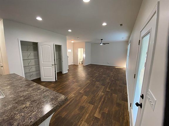 Ceiling fanCovered patioUpgraded cabinetsKitchen with islandRecessed lighting