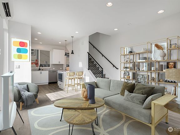 Quite frankly this New & MOVE-IN READY townhome offers space & features not found in other area townhomes. Enough space to relax, entertain & create. Light filled floorplan, Exquisite kitchen w/abundant cabinets & quartz countertops, including HUGE seated island. Stainless appliances, induction range. Just off the kitchen you will enjoy the private/fenced patio. Second level w/bedroom, full bath & "Flex Room," perfect for home office, home gym or ...? The 3rd level Primary Suite offers bathroom w/dual sink vanity & floor to ceiling tiled shower. Walk out deck overlooks the serene neighborhood & has a "peekaboo" view of downtown Seattle. 4Star Built Green. Please register any Buyer Broker upon first visit or SOC is 1%.