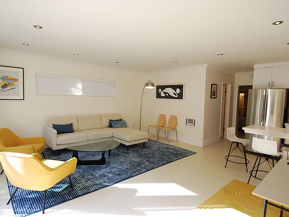 Welcome to your home away from home. This rarely available apartment (just back on the market all utilities included) is a newly appointed all modern design. Easy entry through the front hall leads to a large living area with wood tile floors, rugs, designer dining table and chairs. Sliding doors open to a large patio with dining table, BBQ, water, sun, and park views. The living room is spacious and comfortable. Stone counters and bar in the kitchen open to the dining and living room. Beautiful space with great light throughout the day. Two large bedrooms have over 20 lineal feet of closet space alongside one full bathroom and one smaller ensuite bath.