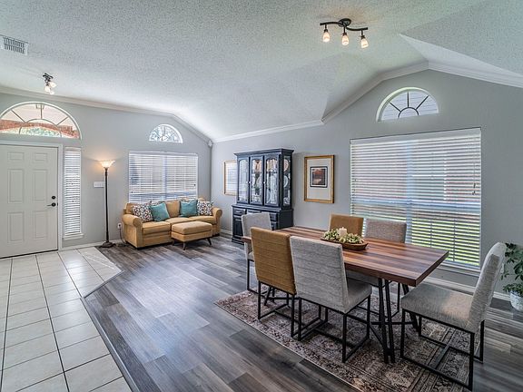 Well maintained, move-in ready, inviting home welcomes you with an airy open formal dining and living room, great for entertaining guests. To the right, a spacious bedroom with glass French doors enhanced by a large front-facing window that could be used for an office. This home offers an oversized guest bedroom with dual closets and a quaint guest bathroom with dual sinks, ample lighting and a ceramic tile tub and shower combo. The primary suite includes four large glazed windows, double closets, a separate shower and a stand-alone jetted tub for ultimate relaxation. The kitchen has plenty of counterspace and cabinets, complemented by natural light streaming from the above skylight and recessed lighting. The cozy breakfast nook, flows seamlessly into the comfortable and warm family room, complete with built-in fire place and three large windows framing views of the backyard. Step outside to a covered patio space where you can enjoy the sound of trees rustling in the breeze. No HOA dues and close proximity to Stovall Park, where community pools, trails, playgrounds, and sports courts await. Centrally located near shops, restaurants and conveniently located near two major freeways for effortless commuting.