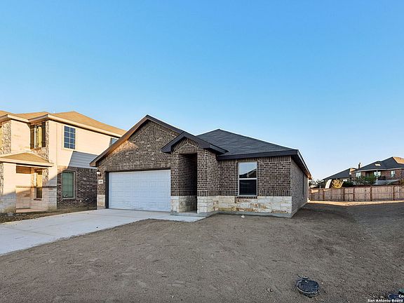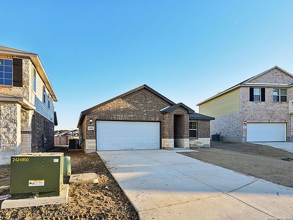 A stunning brand-new Meritage home located in Comanche Ridge, scheduled for availability by the end of November 2024. This home features an open floor plan that begins with a welcoming covered entry leading into a spacious foyer, which flows into an impressive living room. The chef's deluxe kitchen exemplifies superior design and functionality, equipped with sleek stainless-steel appliances, granite countertops, 42-inch cabinetry, and a large walk-in pantry. The home consists of four bedrooms and two full bathrooms, primary bedroom with a beautiful bay window, 8" walk-in shower in primary bath with double vanity, large size closet. The secondary bedrooms are nice size, and the fourth bedroom is perfect for guests, or even a study or hobby room. A formal dining room has a plenty of light. A beautiful covered patio with a gas connection for grill looks over nice sized backyard. The home has 10yr builder warranty. Built by Meritage Homes, known for their energy-efficient features, this home will help you live a healthier and quieter lifestyle while saving thousands of dollars on the electric bill. Comanche Ridge is situated in northeast San Antonio nearby many amenities. With easy access to major highways and employers nearby, this is a beautiful community to live in.
