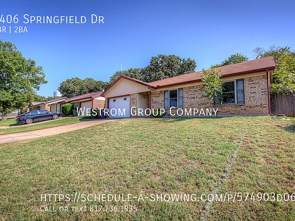 Welcome to this inviting 3-bedroom, 2-bathroom, single-story home in Arlington ISD. Step inside to an open floor plan featuring a cozy living room with a brick fireplace and vaulted ceilings, perfect for relaxing or entertaining. The galley kitchen offers built-in cabinets, dual sinks, a refrigerator, an electric range, and a pantry, with a bright breakfast room just steps away. The primary suite includes its own bathroom, while two additional bedrooms share a second full bath with built-in cabinets. The utility area in the garage has space for a full-sized washer and dryer. Enjoy outdoor living in the large wood-fenced backyard, complete with a spacious covered deck. A 2-car single-door garage adds convenience, and the front yard brings great curb appeal. This home combines comfort and function in a sought-after location, don't miss it!