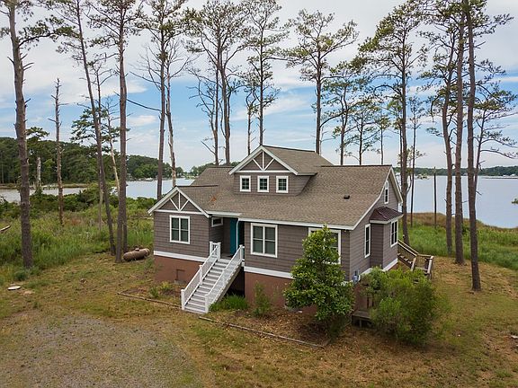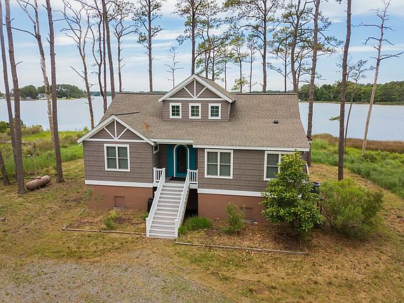 Welcome to paradise! This private, Key West-inspired oasis is sited on two parcels on 5.7 acres on protected Little Oyster Creek, just minutes to the Rapphannock River! Enjoy everything this artist's retreat or nature-lover's paradise has to offer! As you enter through the brightly colored front door of this architect-designed, elevated home, you'll be welcomed by a sizable foyer with closets and hardwood flooring. The living room features tons of natural light, gas fireplace, ceiling fan, and opens to the updated kitchen with solid surface counters, gas cooking, bright white cabinetry, recessed lighting, and tons of pantry/storage space. The kitchen also boasts a sizable dining area & bar seating. The FIRST FLOOR Master suite offers hardwood flooring, fan, & an en suite bathroom with clawfoot tub & marble walk-in shower, plus a generously sized sitting room with access to the screened porch. 2nd first floor bedroom has hardwood flooring & a fan. UPSTAIRS MASTER bedroom has carpet, closet space, fan, a vaulted ceiling, private bath and balcony. Tons of unfinished attic space for all of your storage needs. Hurricane resistant windows and doors. Panoramic views from every window, plus private pier!