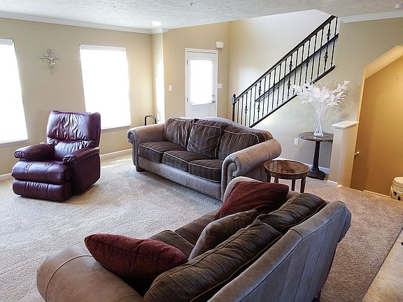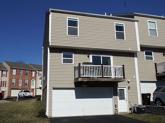 End unit Townhome , low maintenance, built in 2014. Formerly a model home with plenty of upgrades. Open floor plan. Neutral decor, in like new condition, several rooms have barely been used. Generous living room has crown mold and a corner gas fireplace. The kitchen offers upgraded cabinets, stainless appliances, center island with breakfast bar, pantry and beveled edge countertops. 1st floor laundry with gas and electric hookups. Composite deck. Master bedroom has a walk in closet and ensuite full bathroom with shower and double bowl sinks. Home has a Nest thermostat, upgraded hands free faucet in kitchen, recess lighting, wrought iron railing and custom blinds. Garage is 28 ft deep, ample room for cars and can be partitioned for extra storage or living space. This unit has a nice side yard and view of wooded area. Dog park and plenty of green space in lovely community.