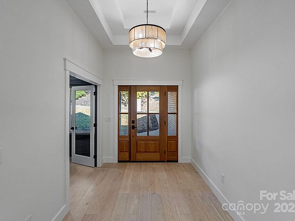 This stunning semi-custom 2591 +/- sq ft home offers 3 bedrooms, 2.5 bathrooms, an oversized bonus room and a dedicated office perfectly designed for modern living. Situated on a 1.2 acre lot in a cul-de-sac, the property is very private with minimal traffic. Conveniently located just minutes from community boat access, Hwy 321 and downtown Hickory. The open-concept layout features 7.5-inch wide white oak engineered hardwood flooring throughout, no carpet anywhere and European-style windows that fill the home with natural light. Living room features gorgeous 12-foot coffered ceilings and a limewashed electric fireplace. The gourmet kitchen includes a gas range stove, oversized island, integral backsplash and walk-in pantry ideal for entertaining or everyday living. Primary suite boasts with an oversized fluted tub and a spa-like custom en-suite shower with a curb less glass enclosure. Walk-in closet has custom shelving which provides exceptional storage. Home also showcases large format tile throughout, a limewashed powder room and tray ceiling in the entryway. Step outside to a covered back porch with ceiling fan and a natural gas line already installed for an outdoor grill. Other features include a concrete pad in the crawl space for extra storage, new washer/dryer included, a fully finished garage with an insulated door, built-in camera and two-way audio via the MyQ app with ultra-quiet DC motor. Every detail has been designed for style, comfort and convenience.