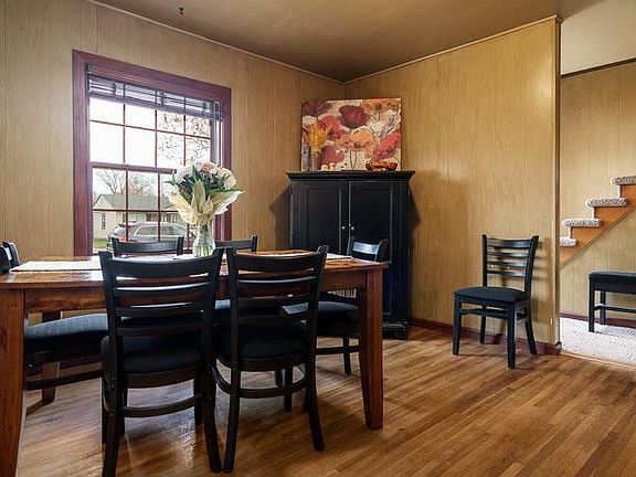 Welcome home to this charming 4-bedroom, 2-bath residence, perfectly situated on a quiet street close to shopping and businesses. The large living room is a true showstopper, boasting a vaulted ceiling and stunning built-in shelving—ideal for displaying your collection or creating a cozy library. A nice formal dining room awaits your dinner parties, while the kitchen features a pantry and inviting breakfast bar for casual meals. Enjoy a flexible floor plan with two bedrooms conveniently located on the main level and two additional serene bedrooms upstairs with the second full bath. The home features some lovely hardwood floors adding warmth and character. Step outside to your private oasis: a super nice fenced yard and large patio, perfect for entertaining and outdoor enjoyment. This home offers comfort, functionality, and an unbeatable location! (Roof in 2023)