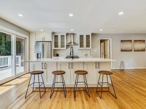 Exceptional! Tastefully renovated gorgeous home in sought-after Cabin John with 4 bedroom 3.5 bath situated on a nice size lot. Sunlit and open floor plan with two master suites. Newly renovated kitchen with 42" cabinet, quartz countertop, large island with breakfast bar, and brand new stainless steel appliances. Beautiful hardwood flooring throughout the main and upper levels. The main level Master suite features a spa-like master bathroom, a stand-alone soaking tub, stylish double sink vanity and a separate shower. Decorative dining area with sliding door opening to the back deck. Spacious walk-out lower level family room with natural light, half bath and a lot of storage space. The upper level features another master suite, two guest bedrooms and a hall bathroom. Brand new roof and siding with modern accents. Fantastic location where you can walk to restaurants, grocery store, cleaners, post office, C&O canal, Glen Echo Park and the Potomac river. Mins to VA and easy access to DC and I270. Short commute to Bethesda and Friendship Heights Metro. Must see!