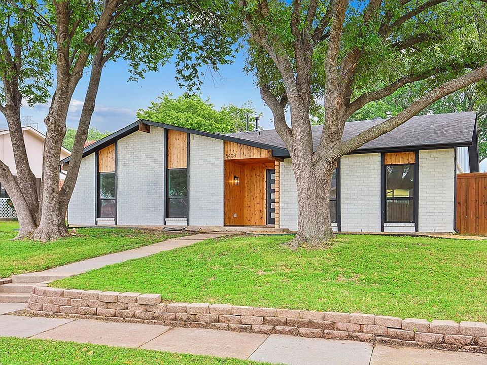 This remodeled mid-century home in a prime Plano location offers the charm of a bygone era with the modern amenities of today. Situated on a cul-de-sac lot backing to the serene Bluebonnet Trail, the single-story layout provides both convenience and tranquility. As you step inside, you're greeted by an amazing open-concept floor plan that seamlessly combines the living, dining, and kitchen areas, creating a spacious and inviting atmosphere. The rare feature of four bedrooms ensures ample space for family and guests, with generous room sizes and flexibility for a home office. The gourmet kitchen offers a perfect backdrop for entertaining with stunning stone counters, tile backsplash, updated appliances and ample storage space. Beautifully finished with designer color schemes, fixtures, and finishes - this home offers boundless natural light and character, and is ready to enjoy just in time for summer. Nearby great shopping, dining, served by highly acclaimed Plano ISD, and NO HOA!