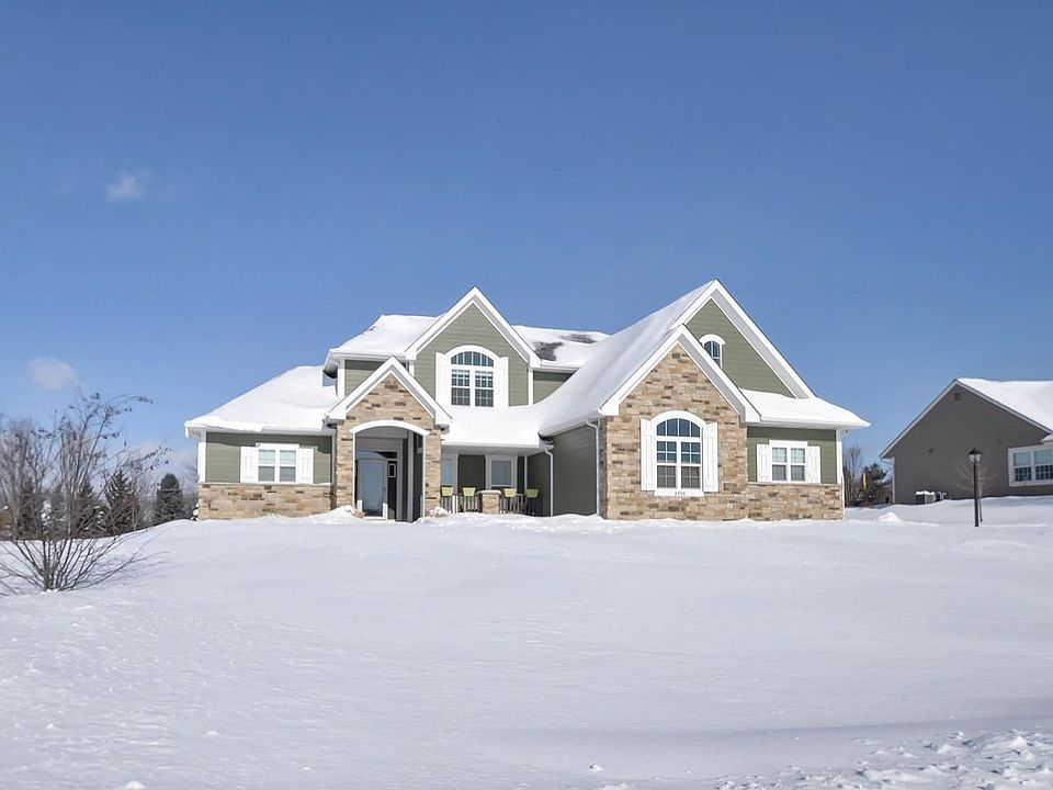 As you approach this executive home nestled on almost 1/2 acre you'll be surrounded by preserves, walking paths and the river. The extra wide driveway leading to the attached 3 car garage and covered porch is inviting. As you enter the foyer your eyes will catch the stunning light fixtures and two story great room with large windows letting in tons of natural light. To your right you'll find a cozy office with french doors. There is a 1st floor master suite w/ all the upgrades including connections for laundry. The chefs kitchen w/ granite is open to the dinette & great room. Upstairs you'll find 3 nice sized bedrooms, one with it's own private bath the other 2 share a jack n jill. You'll be surprised to find an extra large bonus room & laundry room too. Basement is extra deep.