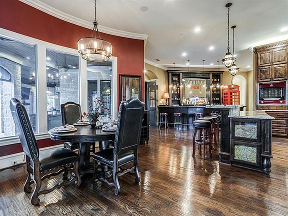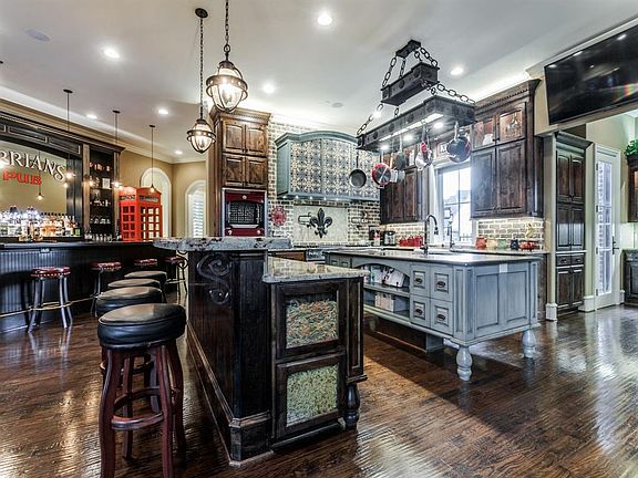 AMAZING does not even begin to do justice to describe this incredible Plano estate. Custom home built by Hawkins Wellwood with exclusive custom features, 4 Car garage, personal workout are and sits on one of the largest lots in the subdivision. Chefs dream commercial grade kitchen that features 6 burner Viking range, Wolf commercial fryer, La Cornue Rotisserie oven, commercial vent hood and more!! Like to entertain? Home has a soundproof music room for recording quality acoustics, a sunken wine room, a full bar with 4 beers on tap, 3 serving stations, and ice machine, downstairs game and media room. UNBELIEVABLE backyard with a custom pool, 2 dining areas, outdoor lighting and top of line video and audio