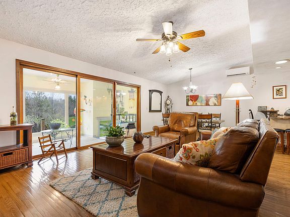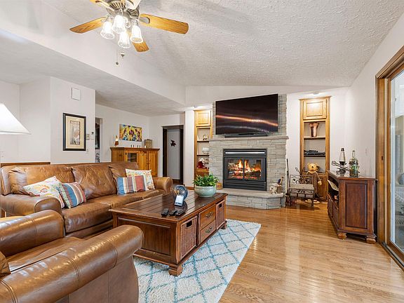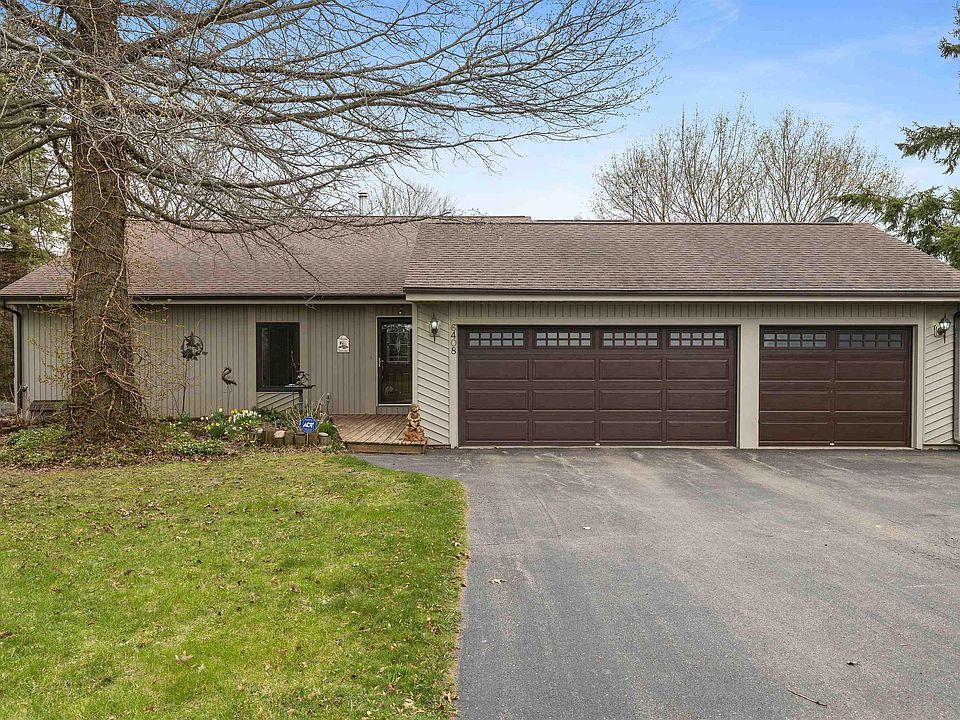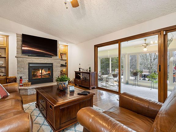 Engineered solar envelope home situated on five partially wooded acres. It's unique in the fact that this method of 2 x 6 construction uses the solar and geothermal energy to eliminate a majority of the home's supplemental heat and cooling. Sharp open floorplan with updated kitchen with newer tile flooring, marble backsplash, and granite countertops. Most kitchen appliances updated within 2-5 years too. Stunning living room with hardwood flooring and newly remodeled stone fireplace. Gorgeous sunroom overlooks brand new deck, railings, and property. Master bedroom with private bath. Remodeled main floor bath. Finished basement family room and bar area with updated tile flooring, cedar paneling, and recessed lighting. Basement includes an office space but it could be used as a fourth bedroom as well. Additional updated full bath in basement too! Attached insulated and heated three car garage with newer garage doors. Detached 48 x 48 steel sided outbuilding with additional garage space and loft. Sellers added onto this building so it would be perfect for someone needing motorhome storage. Upgraded well pressure tank. Roof approx 10 years old. Circle driveway replaced approx 6 years ago. Mitsubishi Heating/Air Conditioning units (with heat pump) added in 2012. Propane tank for garage heat and dryer. Newer hot water heater. Hot tub stays along with all the appliances. Sellers added a pond feature, which has it's own separate well, for additional peaceful enjoyment. Zoned Ag.