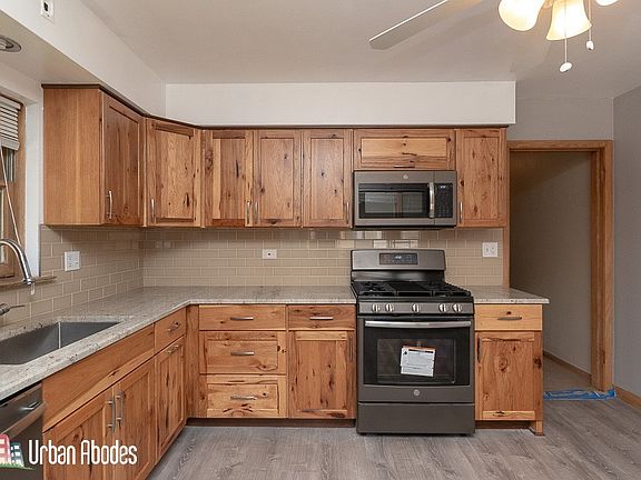 Outstanding three bedroom, one and a half bathroom in Norwood Park features newer eat in kitchen with hand made hickory cabinets, granite countertops, dishwasher, microwave, gas oven/range, fridge, all stainless steel appliances, large combination living and dining rooms, hardwood floors, large bedrooms, great closet space, newer bathrooms, free laundry room in basement, and two outdoor parking spaces included! Near Norwood Park Metra stop and easy access to 90! No pets, please.