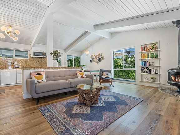 As you step inside, you'll be immediately captivated by the open ceilings, creating a sense of spaciousness and airiness throughout the home. The focal point of the living area is a stunning 60s era freestanding fireplace, providing both warmth and a touch of retro elegance.