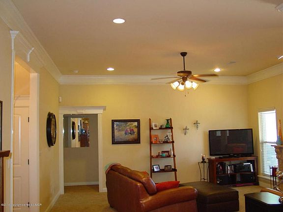 Lovely home with open floor plan. Granite tops in kitchen with island and pantry. Beautiful arched framing over dining area and elegant crown molding. Travertine tile fireplace. Main bath has two separate sinks and counters. Back patio and nice size back yard. Refrigerator stays.