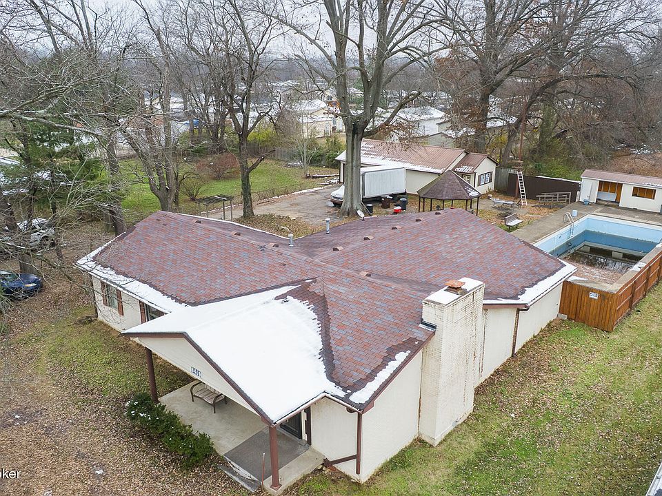 LARGE property - LARGE OPPORTUNITY!!! This is a total of a half acre to a new owner who doesn't mind putting in the sweat equity! The house and yard is on a 0.34 acre lot then the garage sits on a 0.18 acre lot. This home is a 2300 sq ft ranch which features a 21x51 in-ground pool, a detached 24x40 workshop with a 1 car garage and extra room. On the interior, gorgeous wood beams, a gathering space with vaulted ceilings, 3 large bedrooms and 1.5 bathrooms. The front of the house has a large gravel driveway and plenty of yard space all around the property! This can be your next dream space! Priced to sell AS-IS and well below assessed value! Do not miss the chance to land a diamond in the rough!