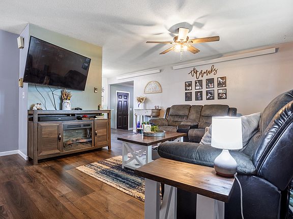 Welcome to this inviting 3-bed, 2-bath, 1172 sq. ft. home in Black Hawk. The interior features new flooring, light fixtures, and energy-efficient windows that create a bright and welcoming atmosphere. The kitchen boasts modern appliances, ample cabinetry, and generous counter space. The dining area features an accent wall, adding a stylish touch. Outside, enjoy a fully fenced backyard with a 336 sq. ft. concrete patio and mature trees for shade and privacy. The property includes a detached 2-car garage with gate access. Conveniently located near I-90, just minutes from Rapid City. Book your showings today! Listed by Jeffery Christians, Real Broker LLC, and co-listed by Beth Staeckeler, RealBroker LLC, 631-902-6095