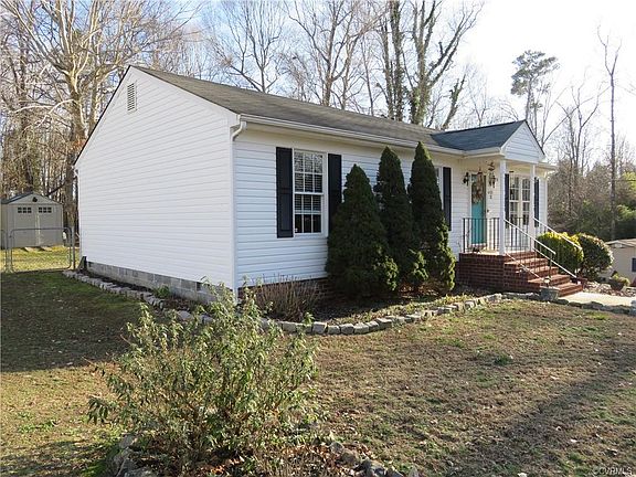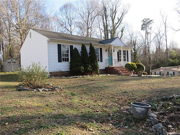 New Kent County rural living in the lake community of Woodhaven Shores! This one owner home has been well maintained and is ready for its next chapter. Notice this well landscaped lot as you arrive at the end of a low traffic street and pull into the paved driveway. The covered stoop provides a nice transition from outside to in where you'll immediately admire the wood floors and wide open floorplan. The spacious living room leads to the kitchen and both are canopied by a cathedral ceiling providing an even more roomy feel. You'll admire and appreciate the white cabinets, ceramic tile backsplash, and portable kitchen island that stays. All appliances included! The master suite offers a beadboard accent wall and a renovated full bath with its own beadboard, a new vanity and tiled walls above the shower! Brand new heat pump/ central air conditioning in 2020! Fresh paint too! Accessed from the kitchen, the rear deck provides a fantastic spot to take in morning sunshine and enjoy pleasant days and wooded privacy to the rear. The fenced in back yard will keep Fido safe and there's even a shed that stays! Many neighborhood amenities. All this with convenience to Richmond & Williamsburg!
