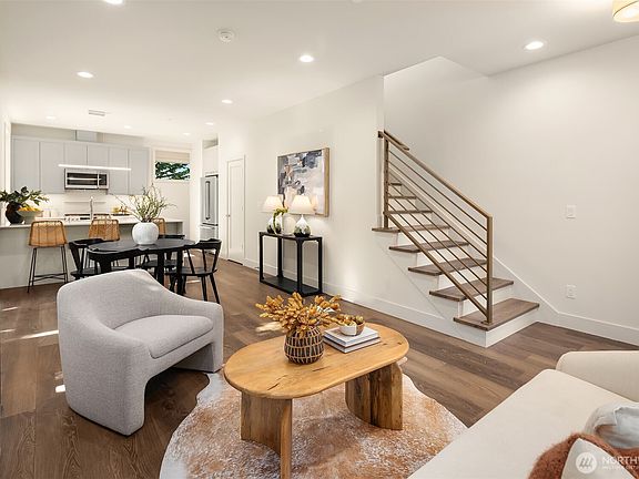 Welcome to this new construction, stand-alone home in Kirkland's West of Market neighborhood. Main floor features cozy fireplace and open concept living and dining area. Large kitchen peninsula adds functional counter space additional storage, and convenient seating. Private yard space is perfect for BBQs or pets. Two entrances, ample storage and powder bath all add to the highly functional design. Upstairs, both bedrooms feature an ensuite bath, making this home both practical and exceptionally comfortable. Enjoy proximity to Lake Washington, Waverly Beach Park, and downtown Kirkland. Included off-street parking adds to convenience of this amazing home.