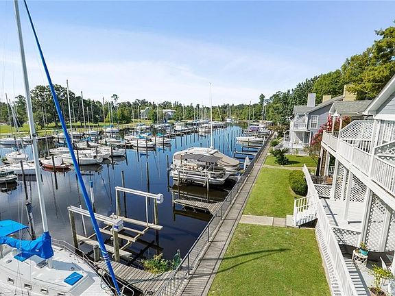 Waterfront -Old Mandeville. View sunrise frm porch overlooking marina. Comes with boat slip outside back door. Updated w/ fresh paint, stainless appliances, solid granite, glass tile backsplash, bamboo wood floors, new corian coutertops & sinks w/faucets & mirrors, master jetted tub with subway tile. Frig, washer & dryer included. Courtyard w/comm pool, minutes to lake pontchartrain by boat. Condo fee covers water, sewer, ext., fld & hazard ins., grounds maint, comm. pool & ext. bldg repairs. Never flooded