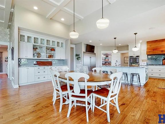 Welcome HOME to The Good Life! This well thought out home was custom built by Goings Homes in 2015. As you enter you are greeted by gorgeous hickory floors and soaring ceilings. The great room has a coffered ceiling, massive stone fireplace and opens to the kitchen from your dreams! Don't miss the prep sink, pot filler and pellet ice maker! You will love the split floor plan that flows into the primary suite w/heated floors, double vanity, soaking tub, tiled shower and walk-in closet that leads into the laundry. Primary suite also opens to the covered patio w/fireplace w/views that I can't find words for. The main floor has two more bedrooms each w/vanity, walk-in closet and jack-and-jill bath. This bedroom set up is copied directly below. The basement also features family room, exercise room and home theatre! All of this atop 60 acres, 20 minutes from downtown Lincoln, only mile off blacktop. What are you waiting for?!