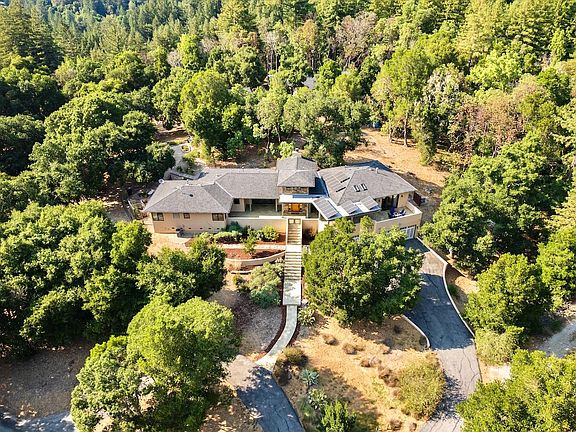 Custom & Sprawling Prairie Craftsman style home, idyllic setting w/usable acreage with AWARD WINNING SCOTTS VALLEY SCHOOLS! Elegance, peace & nature awaits you on this slice of heaven! From the custom garden stone walkways to the vaulted windows, skylights, high ceilings, nature & light is brought indoors. The grand stone stairway leads to sprawling front porch & large patio, perfect for outdoor entertaining. Inside the wonderfully smart floorplan allows for versatile use. 1 bed/full bath at garage level w/ outside entrance. The grand room w/the family room, cozy hearth, dining area, kitchen w/breakfast nook is sure to be the favorite gathering place! Kitchen is equipped with SS appliances, cherrywood cabinetry, and granite slab counters. Separate Living Room. Amazing primary bedroom suite with walk-in closet, office, full En Suite, backyard entrance. Solar, Tesla power pack, whole house generator & more! IF YOU CAN: drive thru Zayante Rd IN FELTON for smoother access, or come off 17.