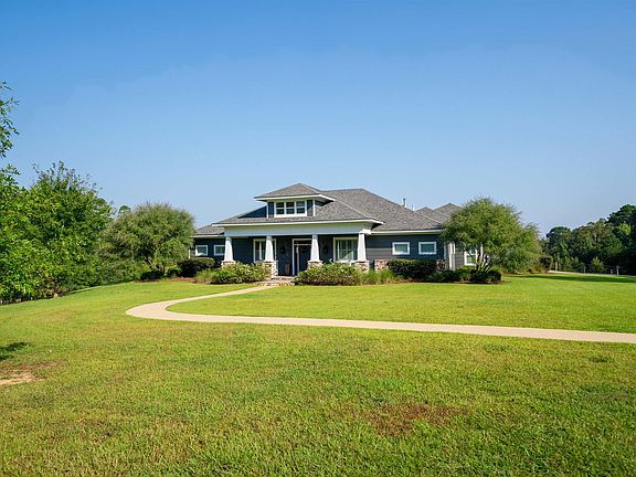Welcome to this stunning custom estate and horse property that perfectly blends luxury, comfort, and country living. From the moment you arrive through the gated entrance framed by stone columns, you’ll be captivated by the beauty and tranquility of this property. An asphalt/concrete driveway winds past a scenic pond and leads to both the main residence and the barn. Built in 2017, the main home offers approximately 3,123 heated square feet with 3 bedrooms and 4 full bathrooms. Wood flooring flows throughout, enhancing the open-concept layout that includes a spacious living room with custom built-ins, bench seating with storage, and a large dining area perfect for entertaining. The kitchen features quartz countertops, a Thermador gas cooktop, oven, built-in microwave, and separate Thermador refrigerator and freezer. A large island provides ample space for cooking and gathering. A dedicated office with custom cabinetry and a built-in desk adds convenience. Step outside to the inviting 500± square-foot covered back porch with tile flooring, a gas log fireplace, and wood ceilings. Enjoy your morning coffee overlooking the private pond from the front porch with a pier, fish cleaning station, swing, and electricity. Equestrian enthusiasts will love the 2,287± square-foot heated and cooled barn built in 2015, which includes two horse stalls, a tack room, a loft for storage, and living quarters with a full kitchen and bath. There’s also covered parking for a horse trailer or motorhome. Both the home and barn are equipped with automatic Generac generators for peace of mind. A 735± square-foot heated and cooled shop with additional covered parking provides even more functional space. The land is fenced for horses and includes 13.24± acres plus three adjoining lots totaling an additional 3.8± acres. This remarkable property offers the perfect balance of elegance, practicality, and serenity—all waiting for you to call it home.