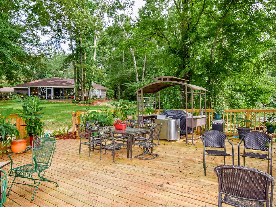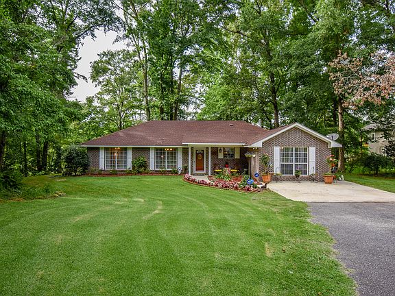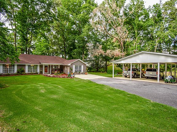 ONE-LEVEL Lake Martin mint condition brick home on a mini farm. About 2 acres (enough room to build a guest cottage?......you decide!). Watch the sunsets from the LONG dock, or from the double covered boathouse. The terrain is so gentle, you could almost call it FLAT. The grounds are lush, shady, and beautifully landscaped. There's even a big garden. There are NO STEPS and NO CARPET! On the lakeside, you'll adore the HUGE glassed-in sunroom. The bonus room is the 4th big bedroom complete with a built-in closet. Outside you'll find a new HUGE 3-bay carport (need a spot for your RV?), and one of the most delightful open PARTY DECKs I have ever seen. Check out the pics of this neat Lake Martin mini farm. Included also is a workshop, a large storage building with AC, all appliances.