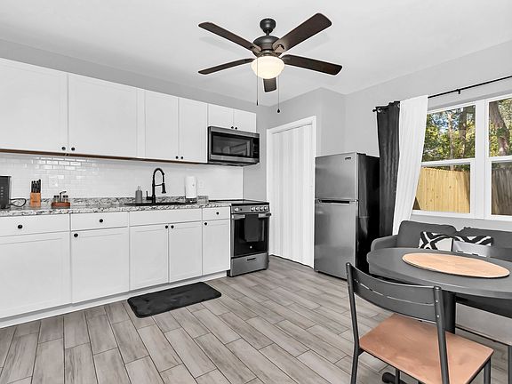 Our kitchen consist of bright white wooden cabinets and stainless-steel appliances giving you the essentials to cook your favorite on the go meals. We also have a coffee station so you can start your morning right!