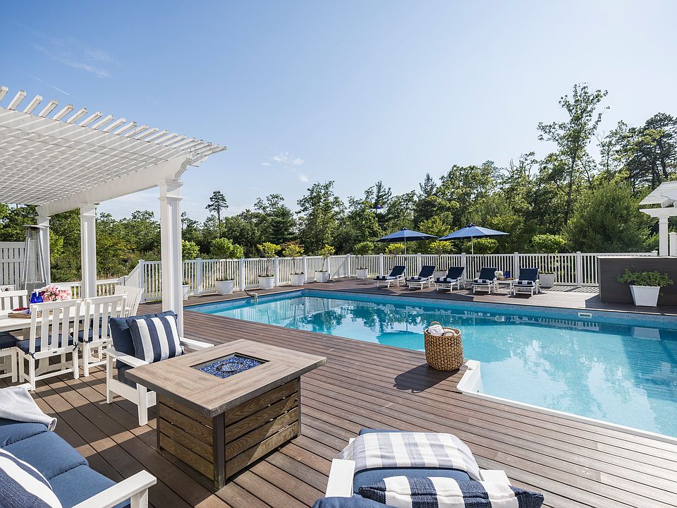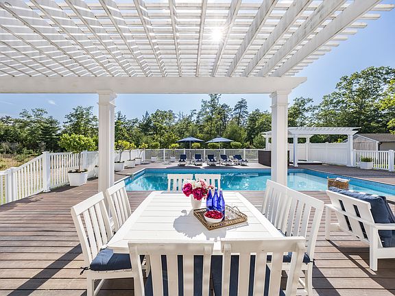 Rental Registration #: RR-25-794 Welcome to this 3400 sf beach home with 4 BR and 3 BA, situated on 3.5 acres at the end of a private cul-de-sac. Two dedicated work spaces with desk and ultra-comfort chairs. Gym equipment w/ Peloton bike. Pool open from April to about Thanksgiving weather permitting, hot tub year round, fire table, professional grill, outdoor heaters, deck is private fenced in. Village fringe property is 1.5 mi to Sag Harbor Village and about 2 mi to East Hampton Village.This spacious home was masterfully finished and boasts an open concept with gorgeous interiors, including a natural wood and brick fireplace, kitchen with top of the line appliances, and lower level with sophisticated finishes. The bathrooms are the epitome of understated elegance with spa like accents. Among other high-end details are imported large marble slab floors, and french doors that lead to an outdoor oasis - an extensive patio with heated pool, hot tub, and redesigned landscaping to enjoy 3.5 acres of privacy. Sonos entertainment throughout the main level. *Full gym with Peloton Bike, squat rack, dumbbells from 3 lbs to 90 lbs each, 2 benches, bar, and plates, yoga mats, Bosu ball, and bands.*New Pool for 2023. Hot Tub Year Round. Pool is open April until week of Thanksgiving, weather permitting, pool can be heated. Meticulously and professionally maintained.*Two separate work areas with desks and chairs, gig speed wifi with router to support the speed. *Fully stocked Chef's Kitchen with High End Appliances and beverage center. Nespresso classic and Keurig machines, comes with pods to get started and hot water maker. Outdoor professional grilling comes with ample seating under the pergola.*EV Charger *Black out shades*Beach towels, beach chairs, and umbrella *Fenced in deck, very private and pristine property with high end furniture.*Newly implemented messaging platform for any occupant guest to request assistance of any kind.
