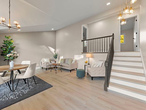 Stunning, fully renovated home that exudes luxury and craftsmanship! Every inch of this home showcases gorgeous finishes, thoughtful design, and meticulous attention to detail. The stylish colors, materials, and modern features you've been dreaming of, plus all the big ticket items taken care of. The dream kitchen features all-new shaker cabinets with soft-close doors, quartz countertops, new stainless-steel appliances, timeless backsplash, pot filler, built-in spice rack, and elegant brushed gold hardware. A skylight and large sliding door fill the space with natural light and open to the newly poured patio-perfect for morning coffee or evening gatherings. Both full bathrooms have been completely remodeled from the studs up, featuring new vanities with quartz counters, modern brushed gold fixtures, soft close cabinet doors, on-trend tile, and statement mirrors with designer lighting. The upper-level bath offers a double vanity, bath/shower combo, and skylight, while the lower-level bath features a spacious walk-in shower. The lower-level family room impresses with a modern slat-wood accent wall and views of the expansive backyard. The living/dining room combo boasts a vaulted ceiling, large bay window, and stylish wallpaper accents, creating an inviting yet elevated space for entertaining. Bedrooms feature large closets with motion sensored lighting, ceiling fans and new panel doors with beautiful hardware. Extensive updates include a new roof, siding, windows, furnace, A/C, and concrete driveway, walkway, stoop, and patio, as well as fresh paint and new luxury vinyl plank flooring and baseboards throughout. Water heater replaced recently. Fantastic location just blocks from local parks and elementary schools, with easy access to shopping, dining, and highways.