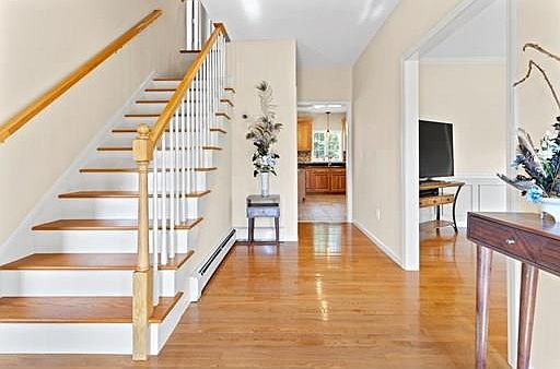 This stately 4 bed, 3.5 bath colonial in Franklin's Meadowbrook Estates is just a quick ride to 495, town centers of both Franklin & Norfolk, and the commuter rail. 9' ceilings throughout the first floor make for an open, airy, and bright living space. Family + formal living rooms, dining room, a sparkling eat-in kitchen w/stainless steel, granite, wine storage, breakfast bar and eat-in space with sliders to stone patio; half-bath & 1st floor laundry. Upstairs, 3 bedrooms plus Master suite w/walk-in closet & beautifully appointed bathroom. Central heat/AC + ceiling fans in every room keep you comfortable year-round. Huge finished basement is an organizer's dream with wall of closets for so.much.storage, pocket doors to an unfinished area with even more built-in shelving, and additional full bathroom with stand-up shower. Gorgeous hardscaped patio out back w/built-in firepit, oversized storage shed/workshop, and private, wooded yard perfect for exploring. Town water/sewer. By appt only!