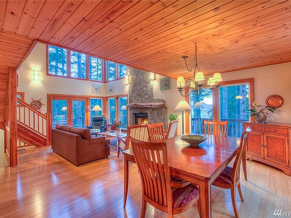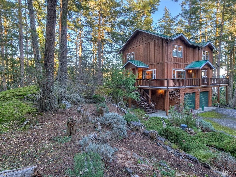 Secluded yet close to Orcas Village amenities & the ferry, this 3 bedrm/3 bath tree level marine view home enjoys privacy next to a green belt. Deeded beach and dock rights in pastoral Harney View Park, gourmet kitchen with bay windows, granite, stainless appliances, Dacor cooktop. Great room features two story stone work on wood burning fireplace & corner window with southern sound views. Generator,wood floors & ceilings,new paint & high speed broadband.Shop plus 2 car garage,view office space.