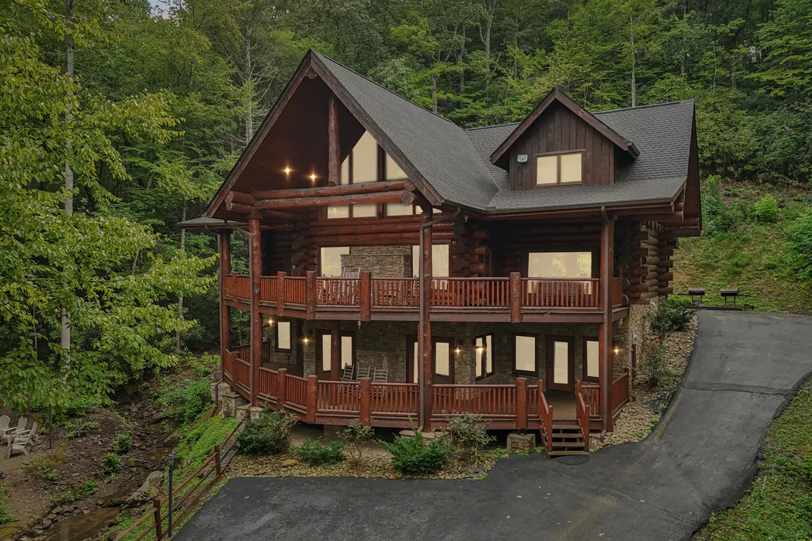 Luxury meets mountain charm in this stunning 4,500+ sq ft log cabin retreat, nestled on over 2 private acres in highly sought-after Pittman Center. Crafted from hand-peeled lodge pole pine logs, this 5-bedroom, 6-bathroom estate offers a perfect blend of rustic elegance and modern comfort, along with impressive rental income. The ...