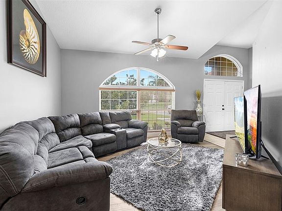 OPEN FLOOR PLAN | VAULTED CEILINGS | FENCED BACKYARD | NO HOA | BAMBOO FLOORS Welcome to this inviting 3-bedroom, 2-bathroom home featuring a spacious open floor plan and beautiful vaulted ceilings that create an airy, light-filled atmosphere. The living room is highlighted by large arched windows that bring in natural light and showcase the home’s charm. The eat-in kitchen boasts stainless steel appliances, granite countertops, a large pantry, and sliding glass doors that open to a spacious screened porch—perfect for relaxing or entertaining. A formal dining room offers additional space for gatherings. The primary suite features an elegant arched window, a walk-in shower, garden tub, and dual sinks for added comfort, and a walk-in closet. The two guest bedrooms are located on the opposite side of the home, providing privacy and convenience. The guest bathroom includes a tub with glass doors. Enjoy outdoor living in the fenced backyard, complete with a shed for extra storage. Additional highlights include a 2-car garage, ceiling fans, bamboo flooring, and NO HOA—giving you the freedom to truly make this home your own. Close to shopping, schools, and beautiful downtown DeLand. Call today to schedule your private tour!