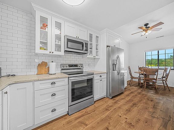 Cozy fireplaceHardwood floorsVaulted ceilingsSolid-surface countertopsLarge windowsStunning river viewsPeaceful water views